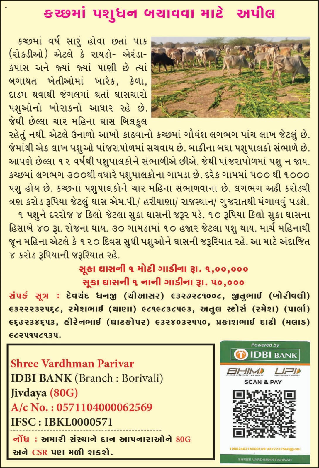 કચ્છ માં પશુધન બચાવવા માટે અપીલ…